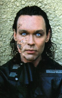 'We've got another weird guy, let's call Doug'? Doug Hutchinson: Basically, yes" They had been trying to get me on the show and had sent me a couple of scripts . not just for weird guys. The second episode had a marine who had been abandoned on this planet forever and he's losing his mind. They sent me the script and it was a very good role, but something inside said no. Then a couple of months later they called me in for a character called The Torturer. There was no script available, just three pages of a scene, and something went bing. I told my agent this was what I wanted to do. That got Morgan and Wong excited, so they expanded the role and turned it into Elroy-L. By the time I got a whole script, The Torturer had a lot of meat in that first episode. I was really pleased with what they gave me. Dreamwatch: Did you know at that tiime that this was a recurring character? The thing about the android characters - the Artificial Intelligences - on the show is that there are so many models of us running around that there couls be thousands of Elroy_Ls out there. Glen Morgan called me and said: 'No escalator'S going to chep you up this time - we can#t kill you!' I just shot a third appearance a couple of weeks ago, picked up for another season I think we will be seeing Elroy-L again. I've given up trying to understand the networks, there's no rhyme or reason to their madness. Dreamwatch: I know fans of the show complain that the schedule has been so disrupted that it's hard to be sure when a new episode will be on. All you can be sure of is that in the end it comes down to money. I understand there is a plan to possibly show the last five episodes in front og The X-Files and see how popular that proves to be. Of course, I've heard that the slot before The X-Files is called the Death Slot, so, I don't know if that's the greatest thing in the world! Dreamwatch: They have has a hard time finding something they like at that hour, but putting Space on at 7pm on Sundays never made any sense. It needs a later time, given the action and the language. I think Glen and Jimmy would be ecstatic, if they could get a later time. It revolves around the military and ther eis a lot they cannot do in that time slot. You can't show blood, point a gun at someone's head ... The language is another problem. Dreamwatch: Probably as violent