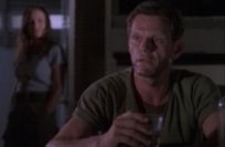 Ray Butts![]() ![]() Written by Glen Morgan and James Wong Directed by Charles Martin Smith Airdate 10/22/95 The 58th is forced to join a mysterious Special Forces Commando, Raymond Butts (Steve Rankin), on a classified sabotage mission to a planet held by the Chigs. Butts' character initially comes off as Space's equivalent of Star Trek's infamous "insane Admiral" archetype. The problem with such a figure is that he drives the action for the episode, leaving our main characters in essentially passive roles. However, the revelation that Butts has brought the 58th to this world in order to bury his dead comrades adds an element of ambiguity and pathos to both the character and the overall proceedings. With Mutiny, and now Ray Butts, we begin to see James Morrison's Colonel McQueen move more into the forefront, taking a more active interest in the 58th's well-being and becoming more than simply the mouthpiece that gives the squadron its assignment of the week. Accordingly, McQueen's popularity with viewers began to take off. Says the actor, "It didn't surprise me that the character became as popular as he did. I saw the potential there. In the first few episodes, they had to tie up the loose ends that the pilot had created. They had to follow Nathan's story, and Shane's story, Cooper's story. You start all these shows as a formula, because you have to, but they change, they evolve."